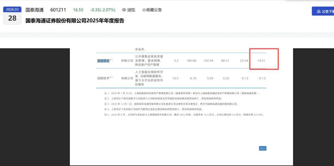 事实上,在急于下结论之前,我们不妨先厘清一个关键背景,国泰君安与海通证券于2025年4月完成吸收合并交割,后续顺利完成工商变更登记,正式更名为国泰海通。而仔细研读两家股东的年报便会发现,国泰海通披露的富国基金相关经营数据,并非覆盖完整的2025年度,而仅包含合并完成后(2025年4月至12月31日)的业绩情况。