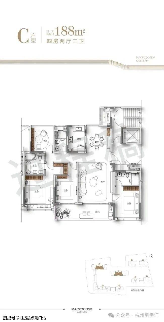 ;通透餐厅。双主卧套房配置;书房可改造为亲子活动室或影音房。整体尺度奢阔,适合改善家庭。